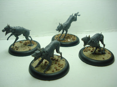 The Guild Hounds box contains enough parts for four miniatures...namely the Guild Hounds. It also contains stat cards for them though there are no upgrade cards.