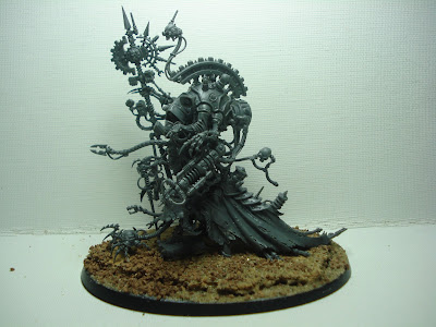 A massive Adeptus Mechanicus Archmagos, he is armed with a master-crafted power axe, arc scourge and refractor field, as well as featuring a mechadendrite hive and scryerskull.